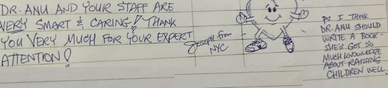Many many thanks to both Dr. Anu and your entire staff for everything. You were always there for us regardless of day or time. We have been coming here for the last four years and have never had a reason to complain. Heartfelt thanks!