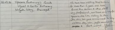 Just like a new parent keeps a photobook of their new baby’s growth and development, we have also maintained a Visitor’s Book since our first opening in 2002. Each one of these compliments from our Kopila family serves more like an accolade than just a positive review.